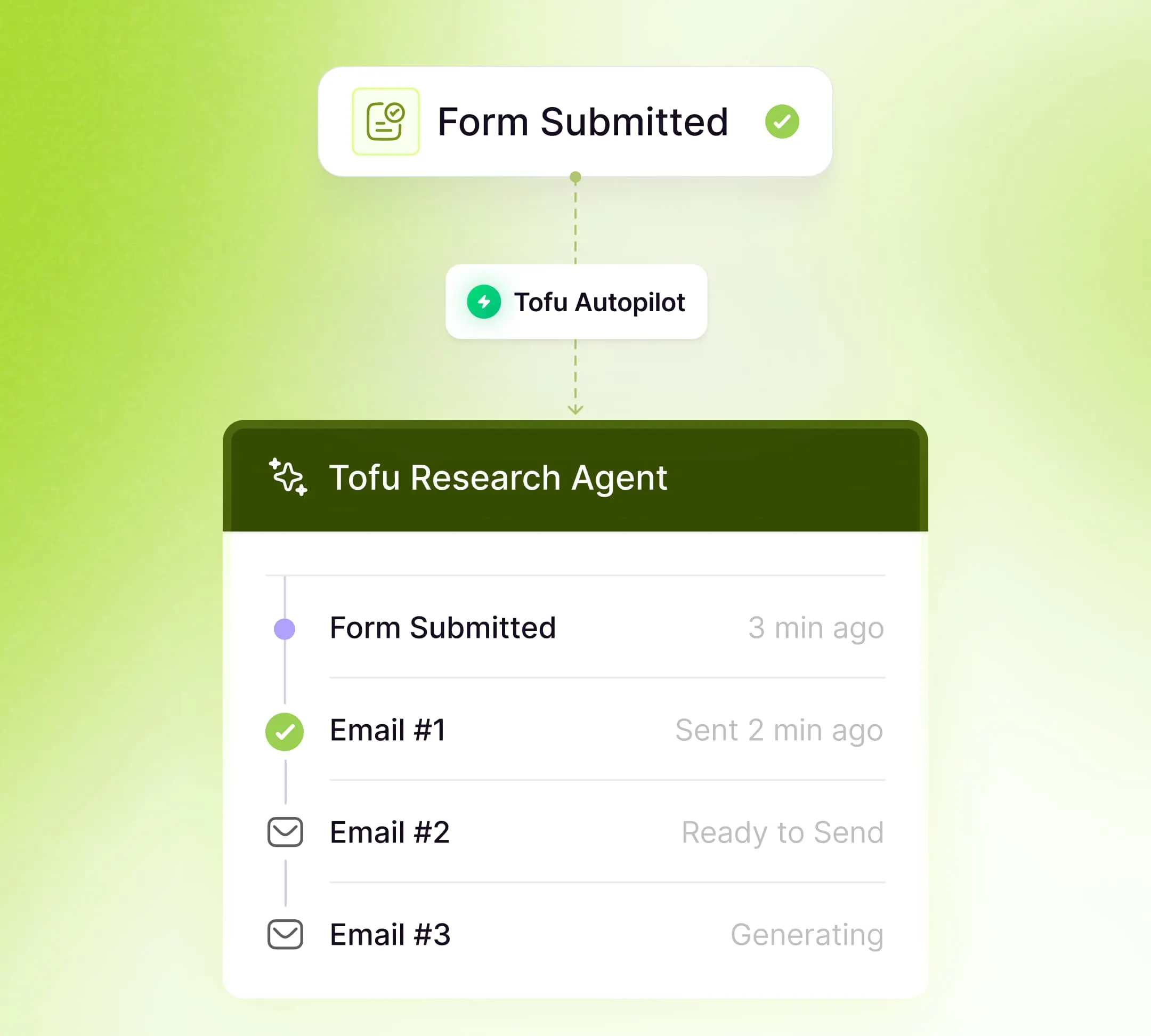 The moment a lead fills out a form, Tofu automatically kicks off a personalized nurture workflow based on their interest, role, and profile.